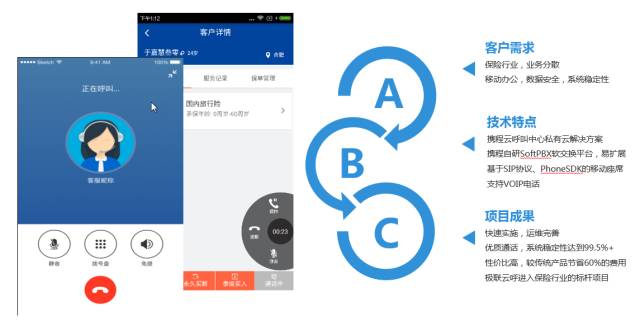 北京十一贝技术有限公司,主要侧重于保险营销业务,提供去哪儿等用户群不同类型的保险产品。根据其业务特性及具体需求,以移动App为主题,利用PhoneSDK快速研发了一套坐席App,提供十一贝业务人员使用。